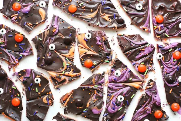 Use multiple colors of melting chocolate to make this spooky Halloween bark! Kids love to get involved with this candy recipe too. It's easy, fun. and so tasty!