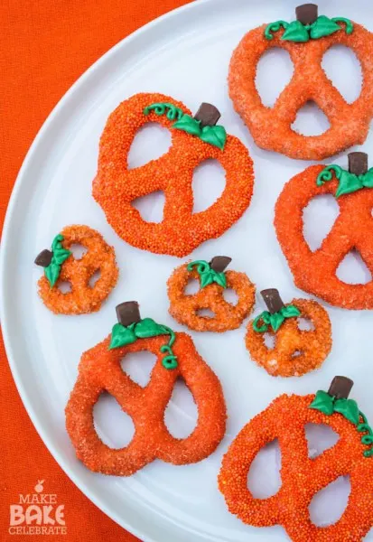 If you have pumpkin lovers in your family, they’ll eat up these cute pretzel treats.