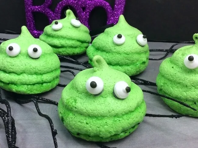 Meringue, green food coloring and candy eyes create this slime treat.