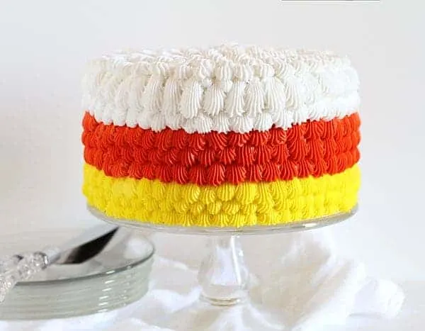 This cake decorating tutorial gives you step-by-step instructions for creating this candy corn inspired cake.