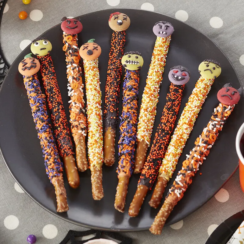 Halloween Emoji Pretzel Rod Treats