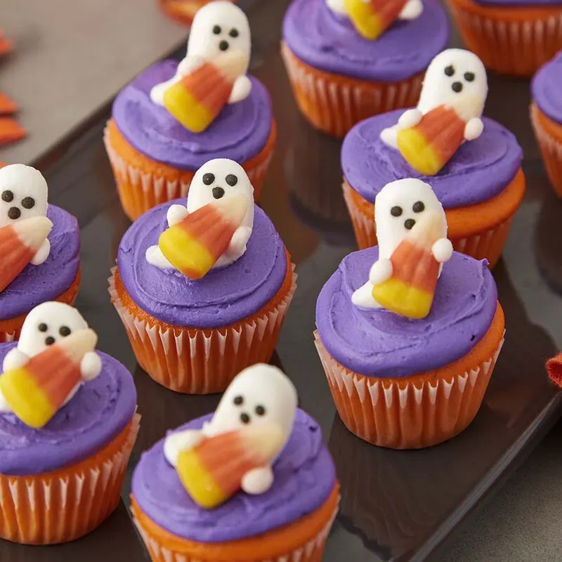 Mini Candy Corn and Ghost Cupcakes